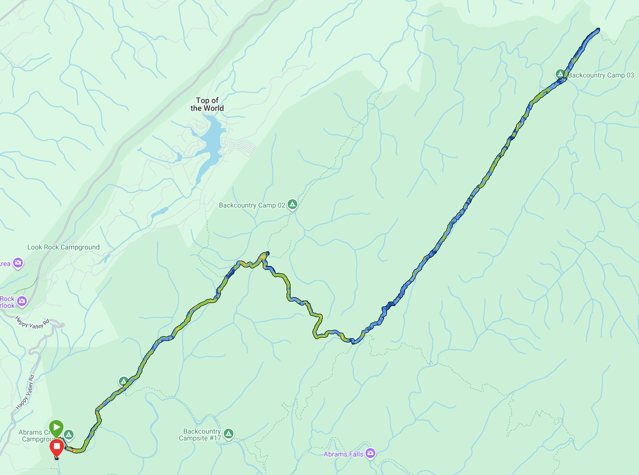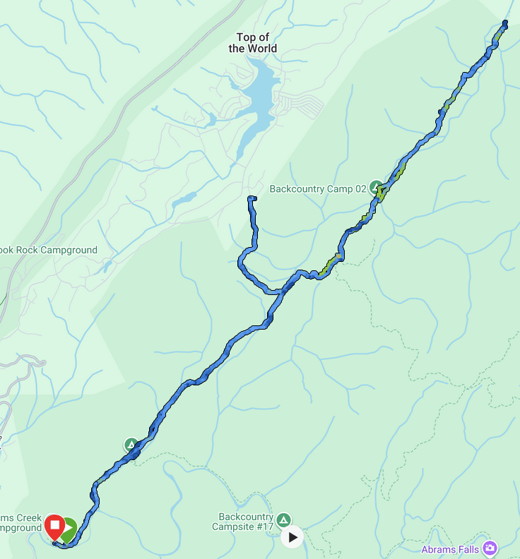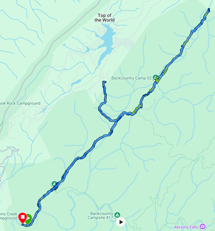The details of this part of the hike are pretty sketchy. I had brought a battery charging device for my watch but I failed to include the proper cable. Furthermore, my phone battery was all but dead as well. The features and fallacies of technology are a topic for another post, but here, let me say that it is amazing how much detail one forgets when not archiving it somehow. Mt. Sterling Ridge is a steady downhill hike from its start at the Mt. Sterling Trail, following the ridge as it descends into Pretty Hollow Gap where there is a crossroad of trails. To the right is Swallow Fork Trail, which leads down to Walnut Bottom, one of my favorite camping spots in the Park. My path took me to the left down Pretty Hollow Gap Trail, which looses about 2,000 feet along its 5.6 miles. In my anxiousness to finish, coupled with all my technology being dead, I remember very little of that hike except that I got to the bottom before 10:00.