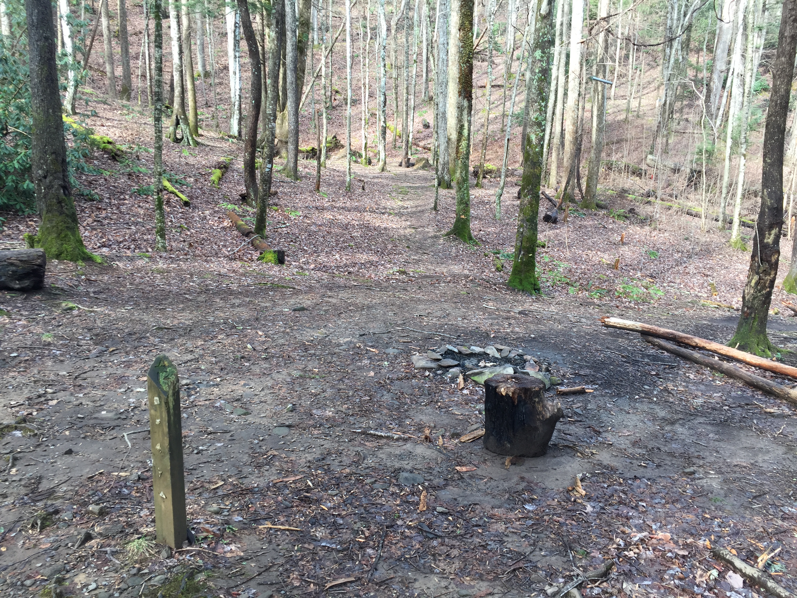 CS 12 is barely more than a wide place in the trail. The fire ring is about 15 feet off the trail. The site is highly visible. The impact is moderate to high. There are two main camping areas with fire rings. The upper area is a little less impacted and more conducive to tarps with better draining tent sites. There is no evidence of privy activity nearby. Water is in ample supply nearby from Forge Creek.