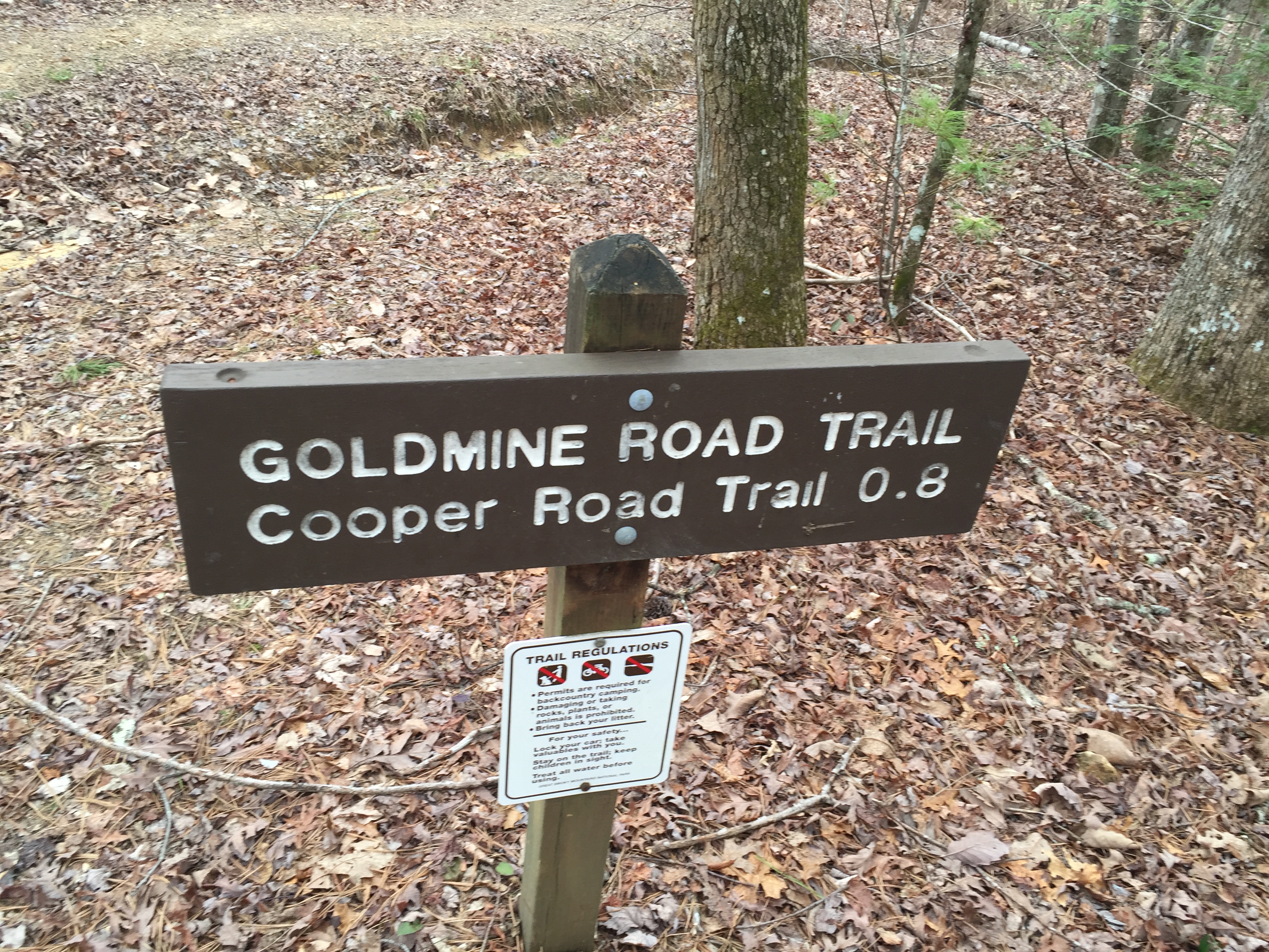 From the Cooper Road Trail, Gold Mine trail ascends steadily the whole 0.8 miles. The Brown Book has some interesting history about this old track but otherwise, there is nothing really remarkable about it other than a good access to Cooper Road and Cane Creek Trails.