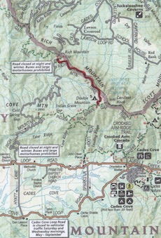 And so this hike started out to be a loop around Abrams Falls. The original path was to be Cooper Road to Hatcher Mountain to Hannah Mountain to Rabbit Creek and out.
